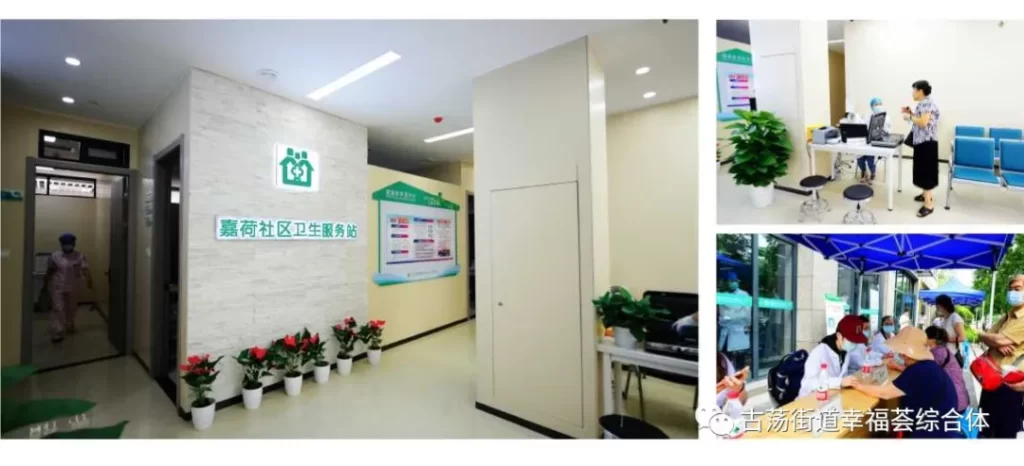 嘉荷社区卫生服务站内设全科和中医诊室、针灸推拿室、健康教育、药房等,有自助挂号、动态血压、动态心电图、血液生化检验、颈腰椎牵引、 红外线理疗等医疗设备,站内有全科医护人员和不定期专家坐诊。